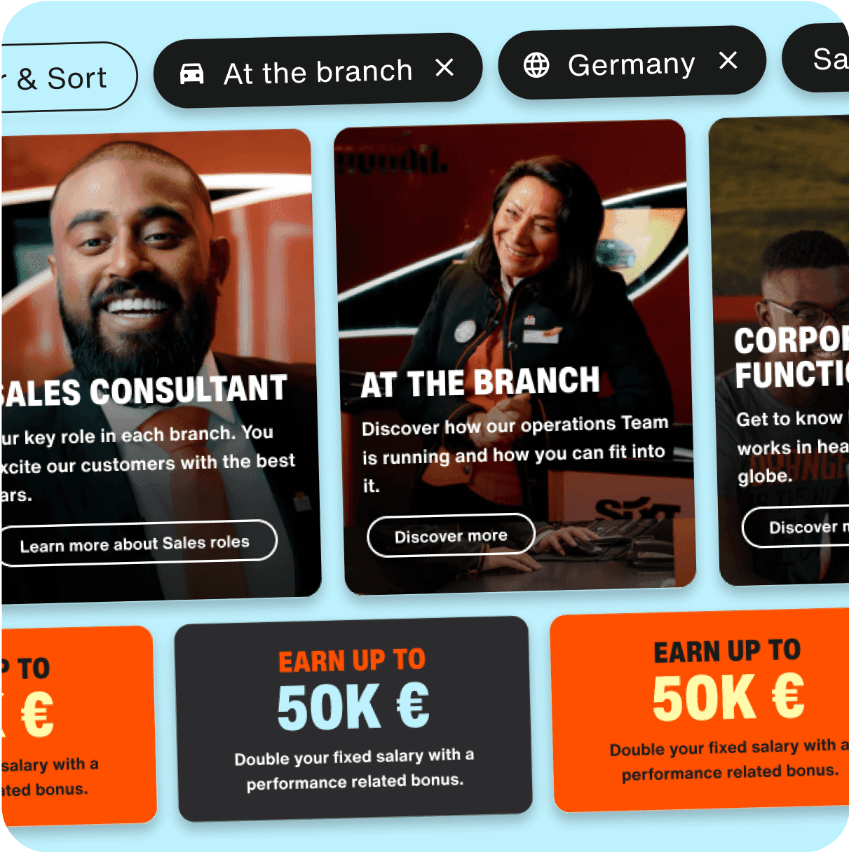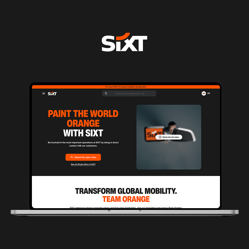 Nachdem wir SIXT bereits im Kern ihrer Plattform mit UX/UI Design unterstützt haben, durften wir auch ihre Karriere-Website modernisieren – und zeigen, wie Arbeiten bei SIXT aussehen kann.