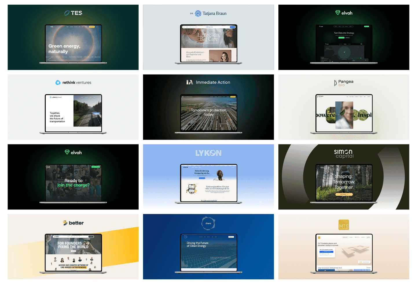 Wir haben Erfahrung mit Corporate-, B2B-, Startup-, Tech-, Finance- und Employer-Branding-Projekten. Wenn du eine leistungsstarke, story-getriebene Website brauchst, unterstützen wir dich gern – unabhängig von deiner Branche.